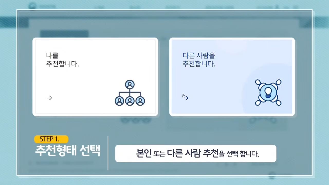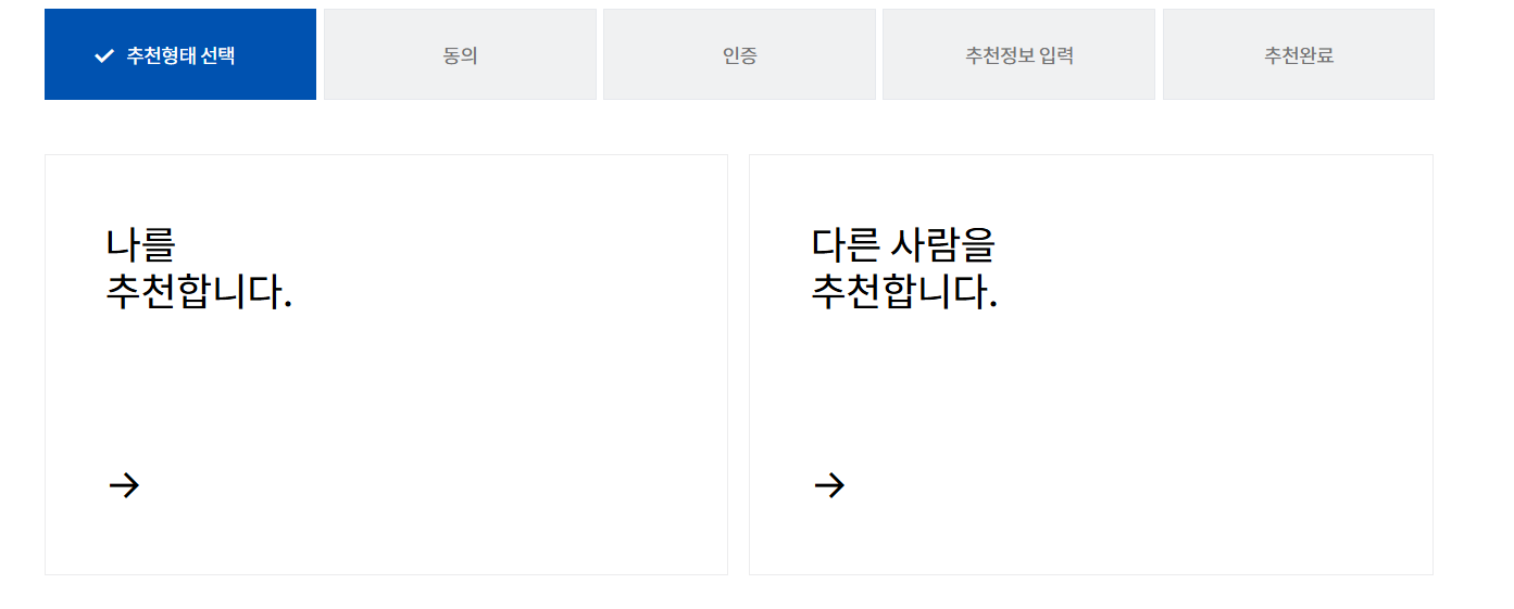 이곳에서 상단 메뉴의 '추천하기' 버튼을 클릭하면 추천 절차를 바로 시작할 수 있어요. 모바일에서도 접속과 추천이 가능하니 시간과 장소에 구애받지 않고 편리하게 참여하실 수 있습니다.