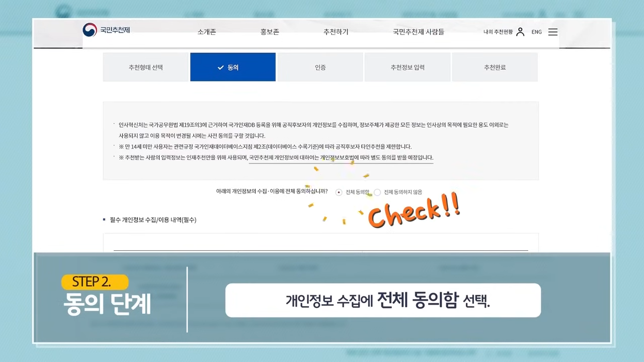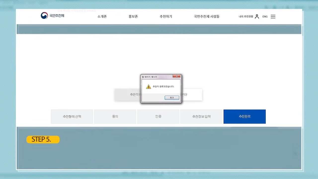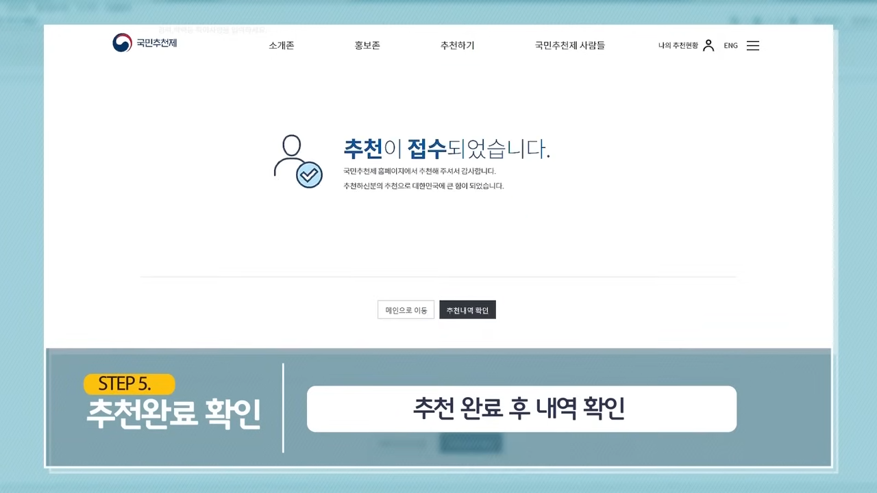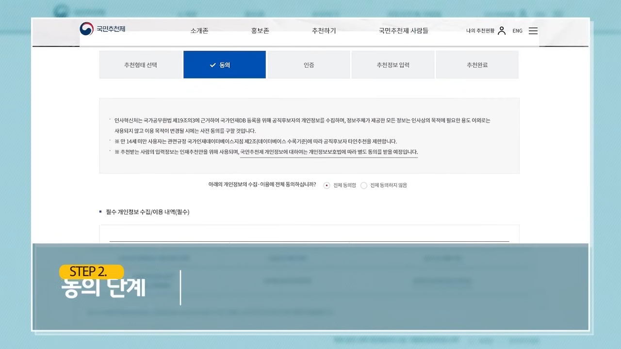 국민추천제 홈페이지에서 추천은 아래 절차를 따라 진행하면 됩니다.