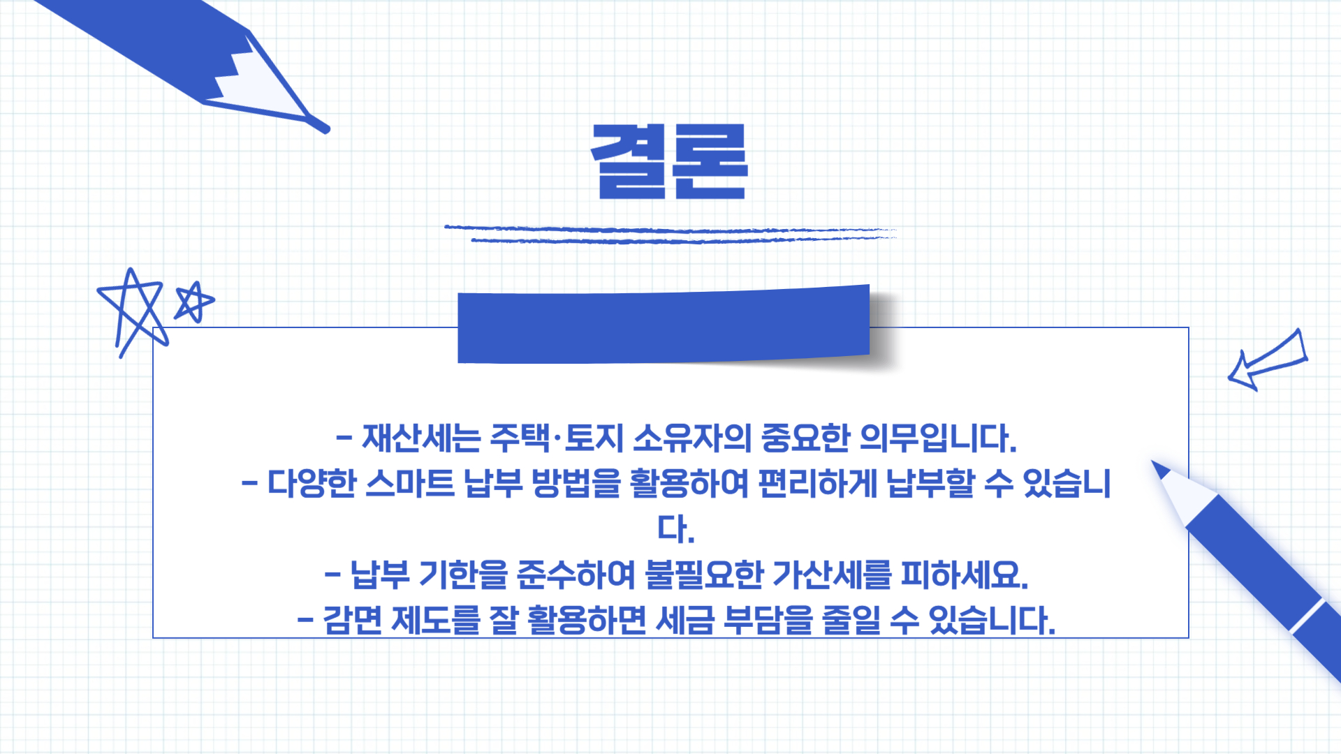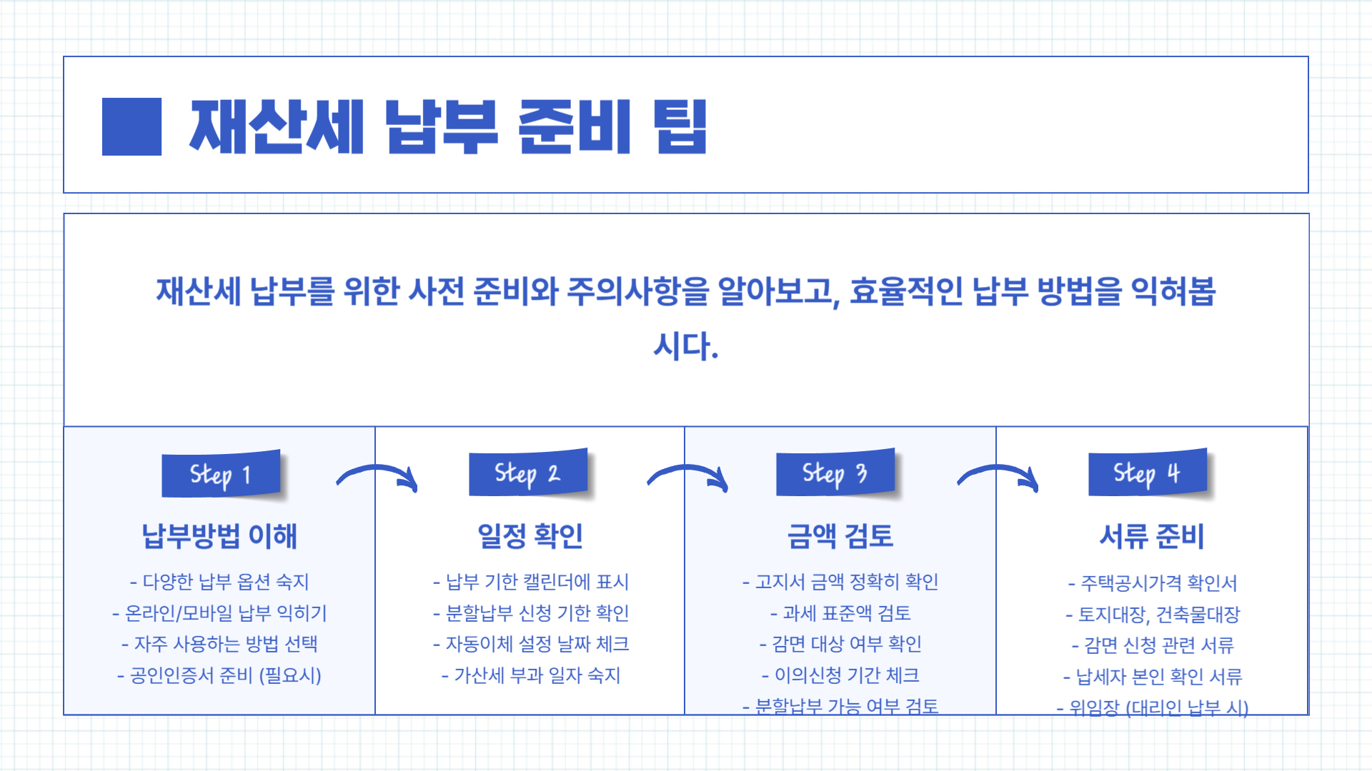 재산세 납부방법을 미리 이해해 두면 고지서를 받자마자 스트레스 없이 처리할 수 있다. 올해는 늦지 않게 납부하고 가산세 걱정 없는 여름 보내기 바란다. 이 글이 도움 됐다면 댓글과 공감으로 알려 주세요!