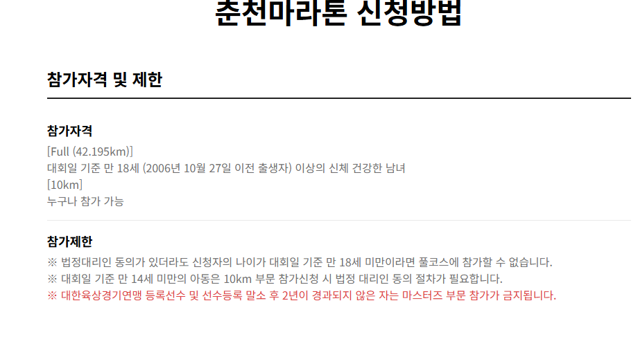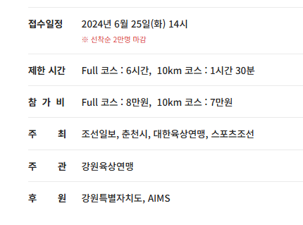 - 풀코스와 10km의 접수 일정이 다르므로 혼동 주의