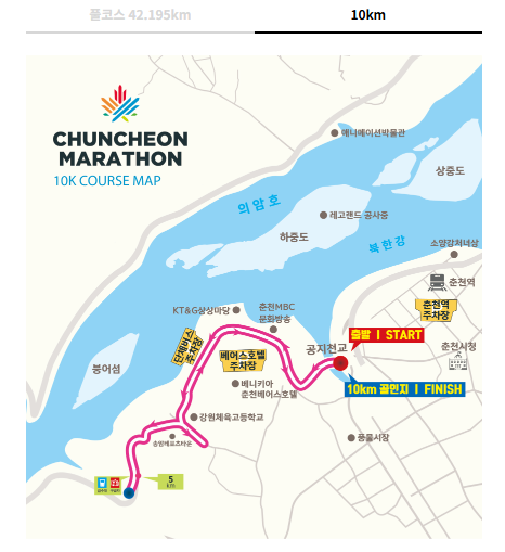 - 10km 루트: 풀코스 중 일부를 순환하며 사용, 출발지와 도착지는 동일