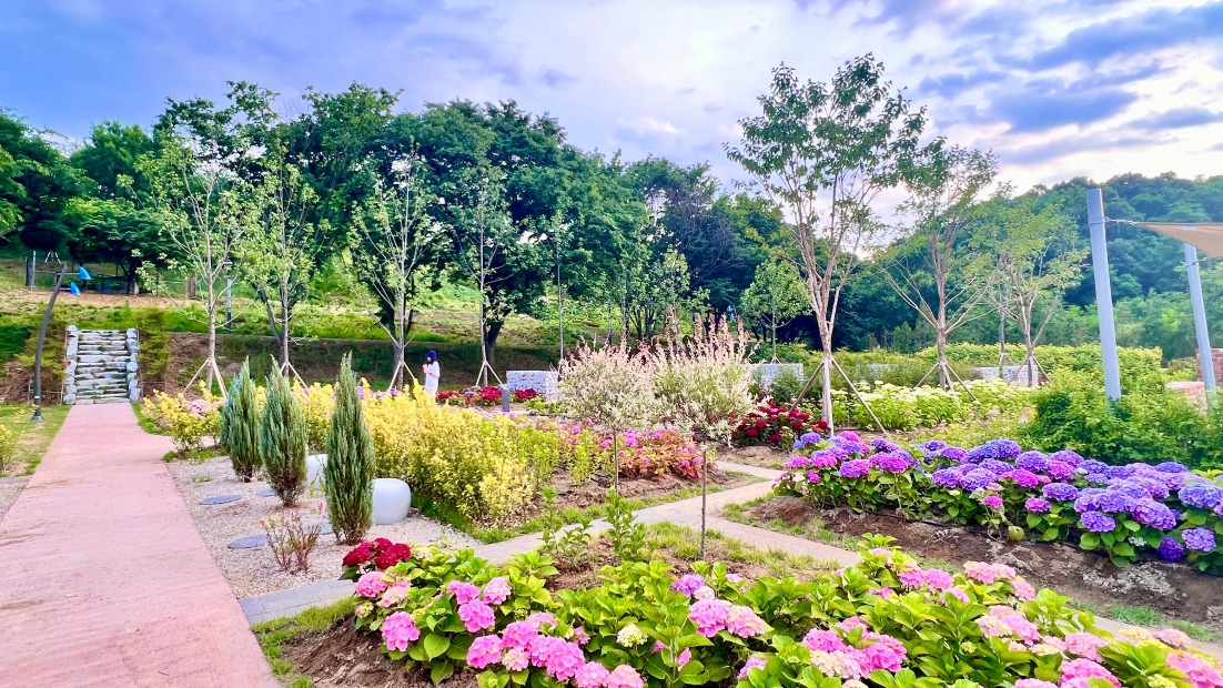 최근 SNS에서 주목받고 있는 6월 수국축제 명소로 구미 다온숲이 있습니다. 과거 쓰레기 매립장이었던 이곳은 현재 꽃과 나무로 가득한 자연 정원으로 탈바꿈했어요. 언덕길을 따라 펼쳐지는 수국 군락은 그 자체로 장관을 이루며 사진 찍기에도 더없이 좋은 배경이 되어줍니다.